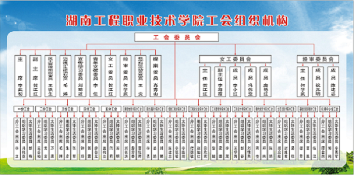 湖南工程职业技术学院工会是依照《中国工会法》和《工会章程》成立的教职工群众组织,是党联系教职工群众的桥梁和纽带,是会员和教职工权益的代表。目前学校现有工会会员631名,专兼职工会干部97名,教职工入会率100%。