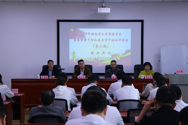 11月11日下午,第二期全省自然资源系统基层管理干部及技术骨干综合研修班结业典礼在学院培训中心11楼会议室举行。省自然资源厅人事处副处长吴方兴、省自然资源事务中心宣教部部长邱业惠到会指导,学院副院长张国辉出席结业典礼。结业典礼由学院继续教育学院院长方志中主持。