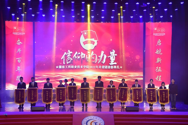 5月19日晚,我校庆祝共产党成立100周年活动——“信仰的力量”2021年共青团五四表彰典礼在学校体育馆隆重举行。学校党委书记龚声武,党委副书记、校长陈建军,党委副书记、工会主席李武初,纪委书记柒文英,副校长张国辉、刘玉方等校领导出席表彰典礼。各职能部门、二级院部负责人,全体辅导员,受表彰的先进集体、先进个人及2000余名团员青年代表参加了表彰典礼。