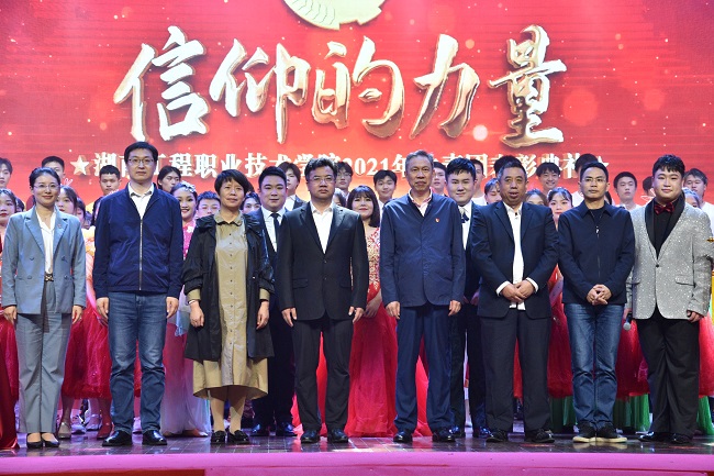 典礼上,表演了精彩的展演节目。通过歌舞《青春心向党》、快板舞《礼赞脱贫攻坚》、歌舞串烧《红歌联唱》、舞蹈《最美洞庭》《志愿者中国》和情景剧《站在珠峰之巅》等多种表演形式展现了中国共产党100年的奋斗历程,展示了工程师生奋发向上的精神风貌,用青春正能量向建党100周年献礼。