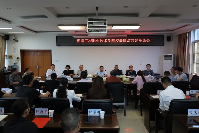 9月26日,学校组织召开校商廉洁共建座谈会,邀请了与学校有合作业务的餐饮、安保、物业等19家企业参加,学校全体校领导、后勤管理处、资产管理处、基建处、财务处、安保处、图书信息中心、纪检监察处等部门负责人参加会议。学校纪委书记王俊主持会议。