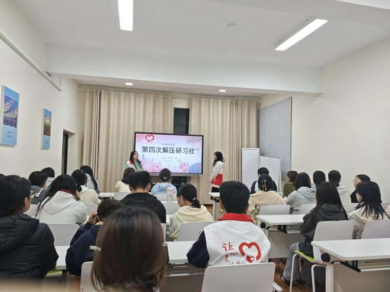 活动开场前,校心灵的成员们为大家详细介绍了大学生心灵成长工作室。它是学校专门为同学们搭建的心理支持与成长平台,隶属于湖南工程职业技术学院大学生心理健康教育中心,是与校学生会平级的学生组织。解压研习社作为校心灵的特色项目,致力于为同学们搭建交流平台,通过创意活动缓解学业压力。