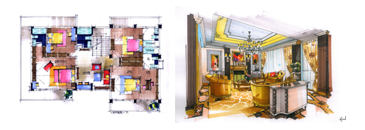 第一阶段熟悉室内手绘+设计构成 打下美学基础。
