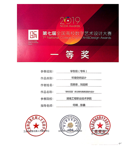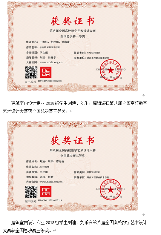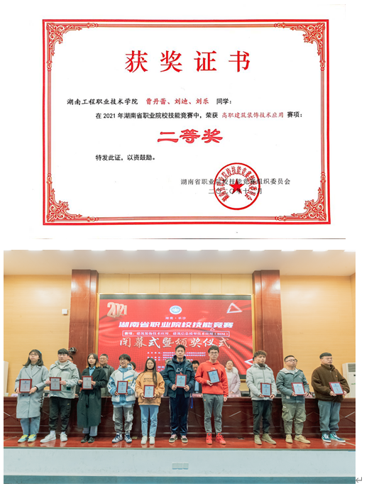建筑室内设计专业2018级学生曹丹蕾、刘迪、刘乐在2021年湖南省职业院校技能竞赛中,荣获高职建筑装饰技术应用赛项二等奖。