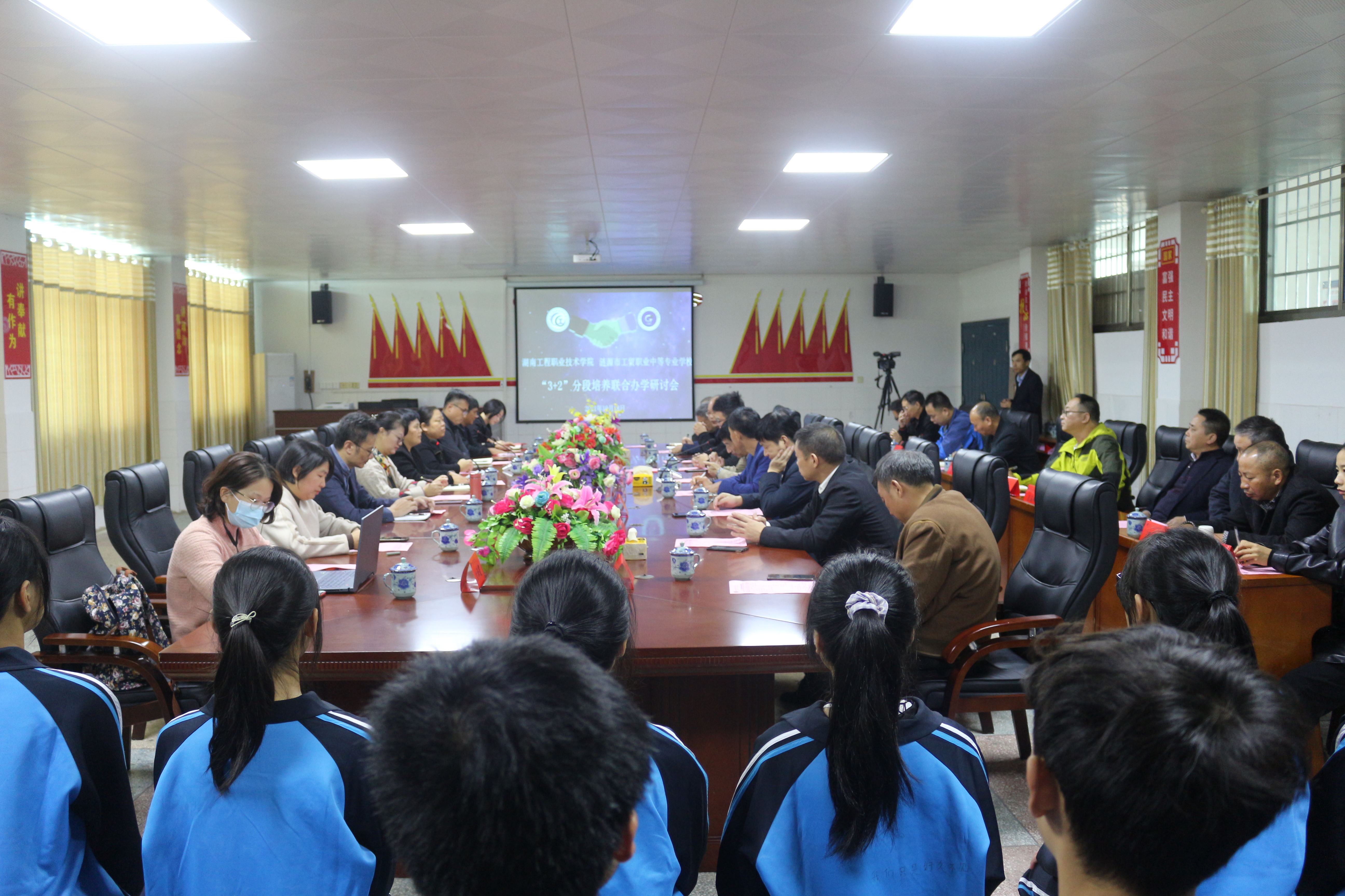 10月18日,我校副校长玉小冰带队一行9人赴涟源市工贸职业中等专业学校,就工程管理学院建筑经济信息化管理专业中高职衔接“3+2”分段制班,联合制定人才培养方案开展专题研讨会。我校教务处、学生处、招生就业处及工程管理学院的相关领导和老师,娄底市教育局职教科领导、涟源工贸中专校领导和老师及50名学生等参加此次研讨会。会议由娄底市教育局职教科科长朱孜东主持。