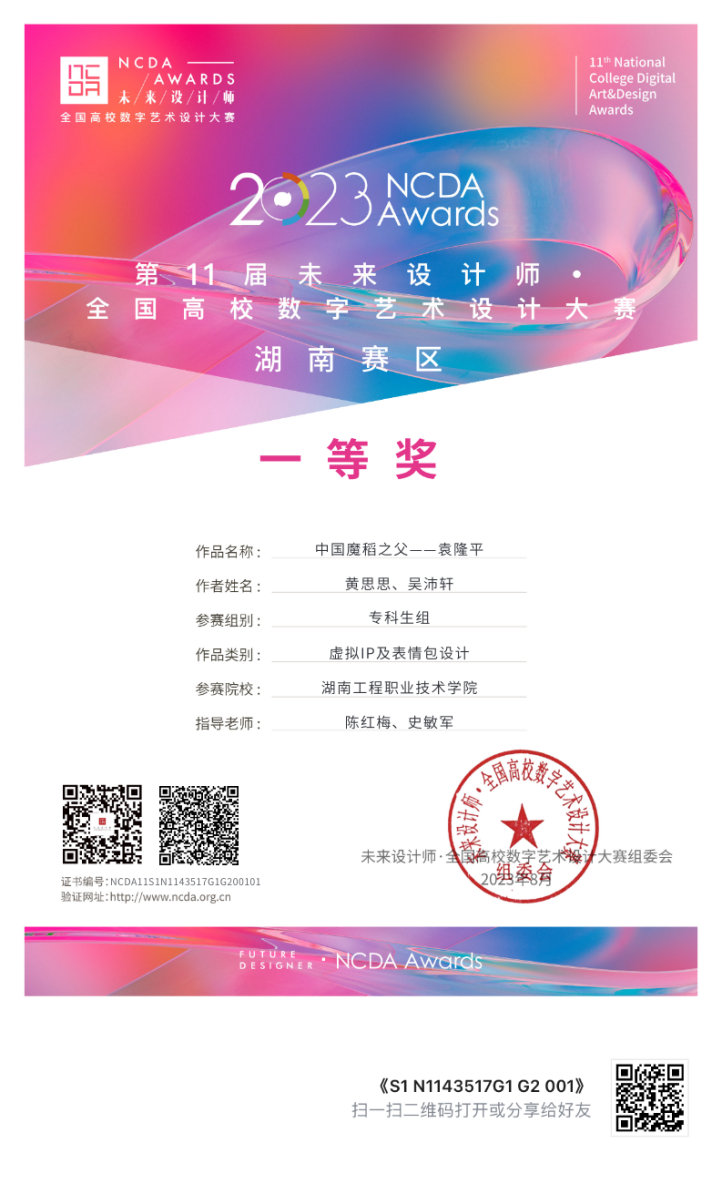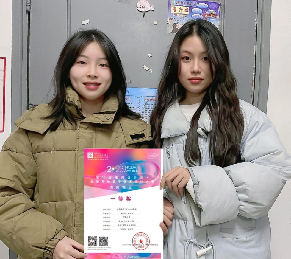 陈红梅、史敏军老师指导黄思思、吴沛轩参加全国高校数字艺术设计大赛获一等奖