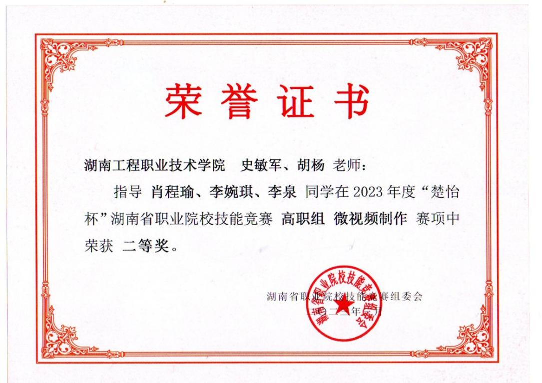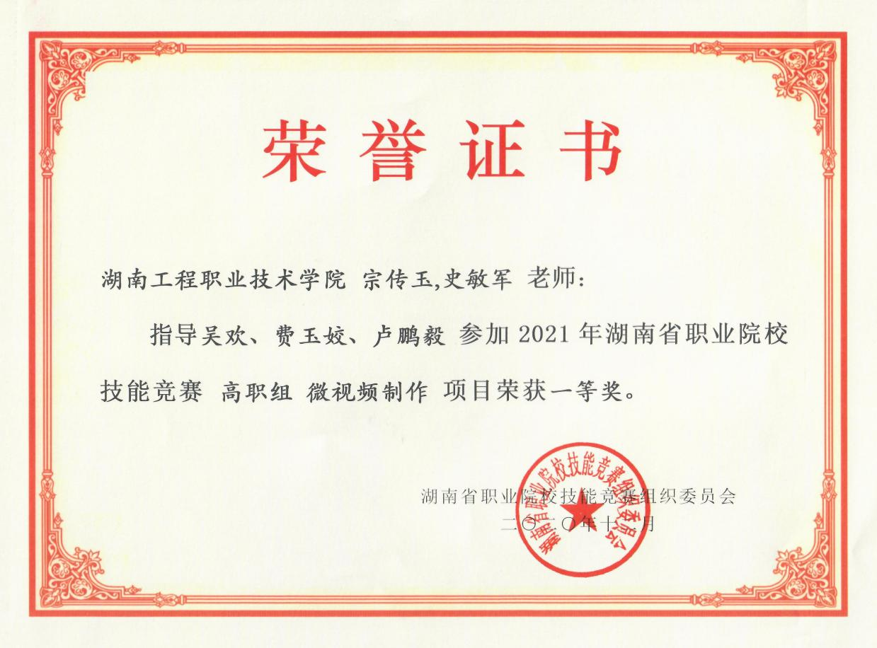 宗传玉、史敏军老师指导学生荣获湖南省职业技能竞赛微视频制作赛项一等奖
