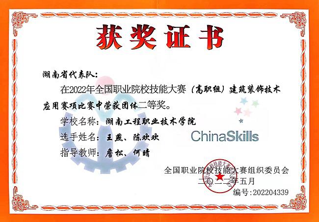 建筑室内设计专业学生在全国职业院校技能竞赛中荣获二等奖