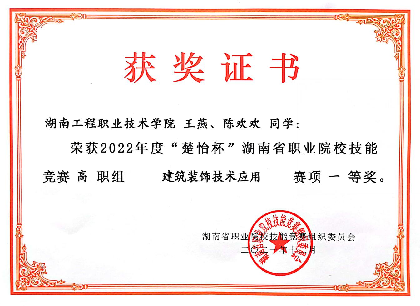 建筑室内设计专业学生在湖南省职业院校技能竞赛中荣获一等奖