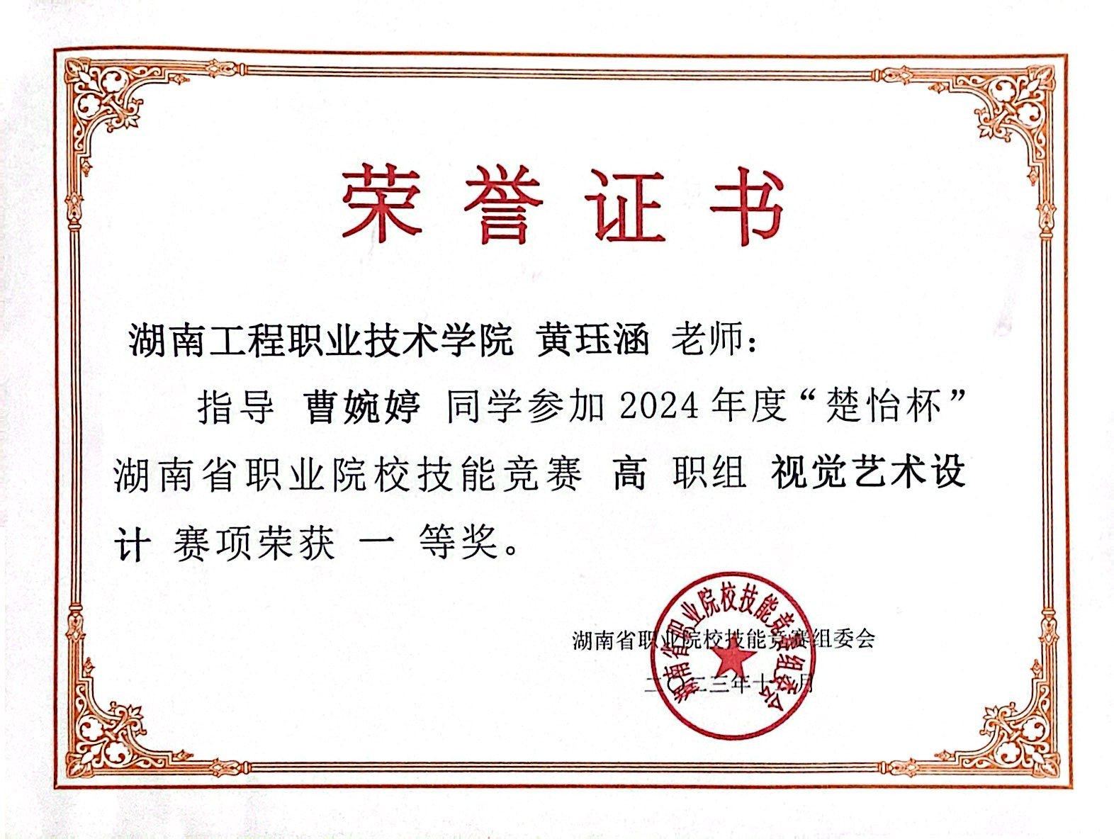指导学生获2024年技能竞赛视觉艺术赛项一等奖
