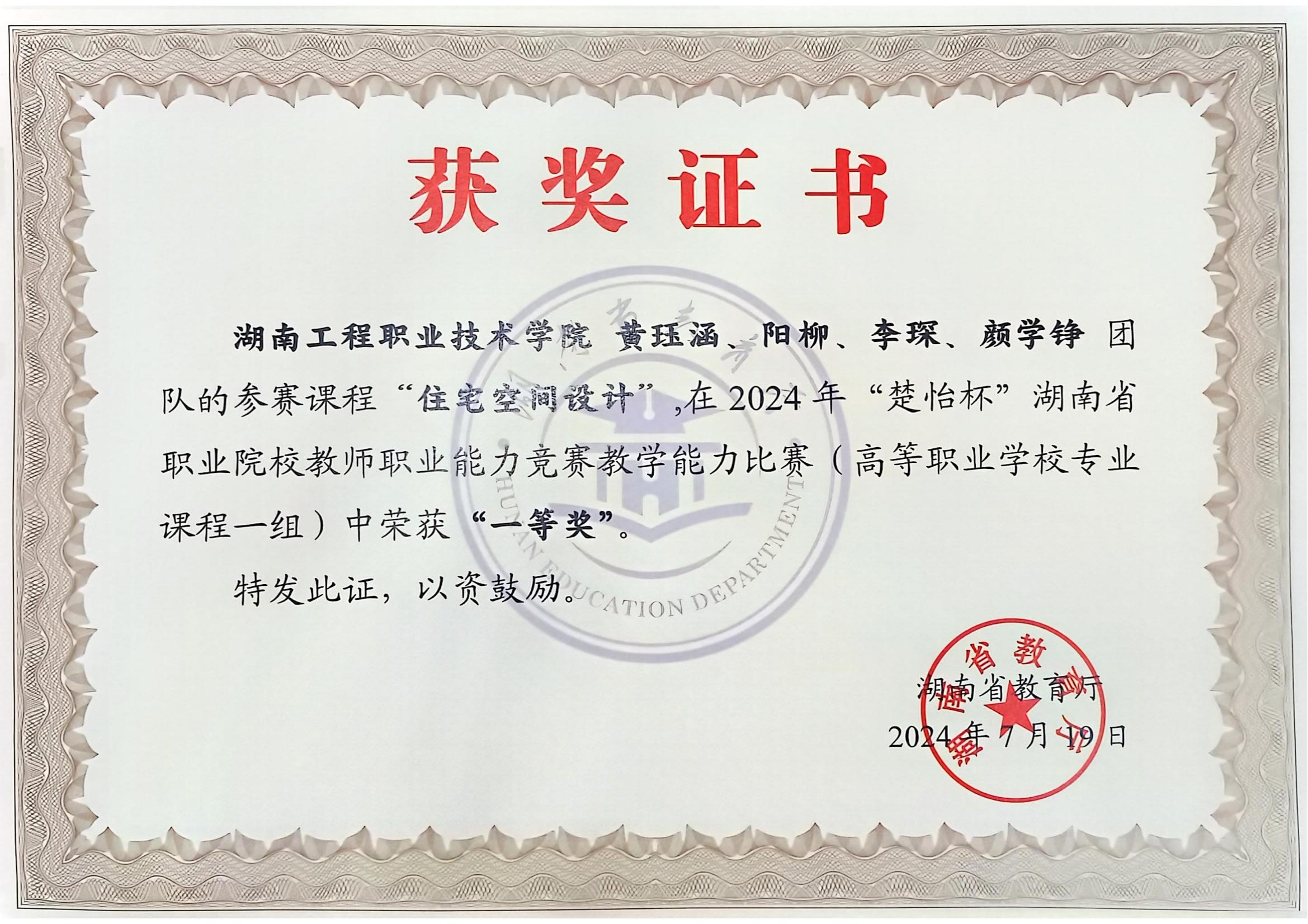 教师团队获2024年“楚怡杯”教师职业能力竞赛一等奖