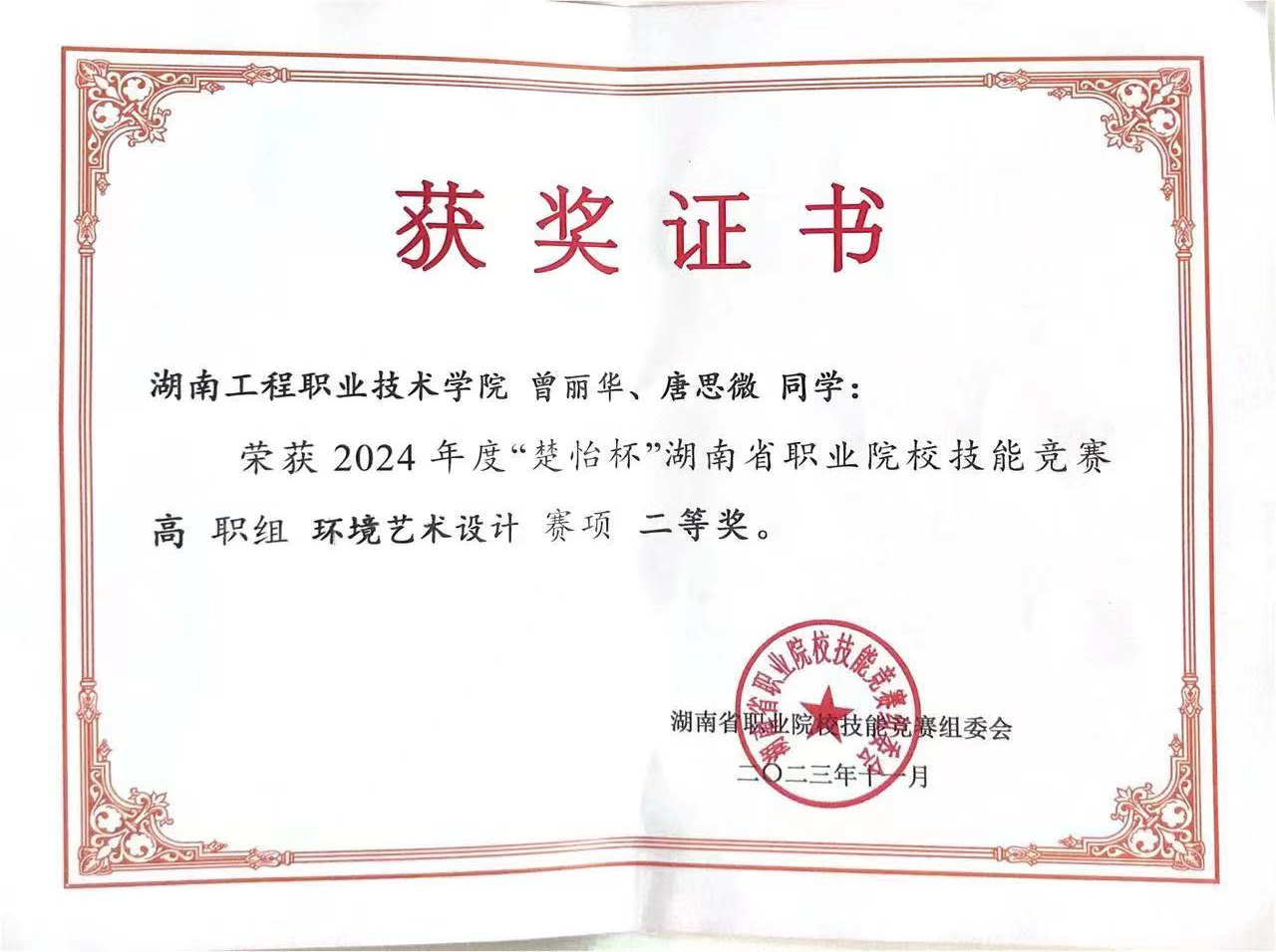 环境艺术设计专业学生获湖南省职业院校技能竞赛奖项(部分)