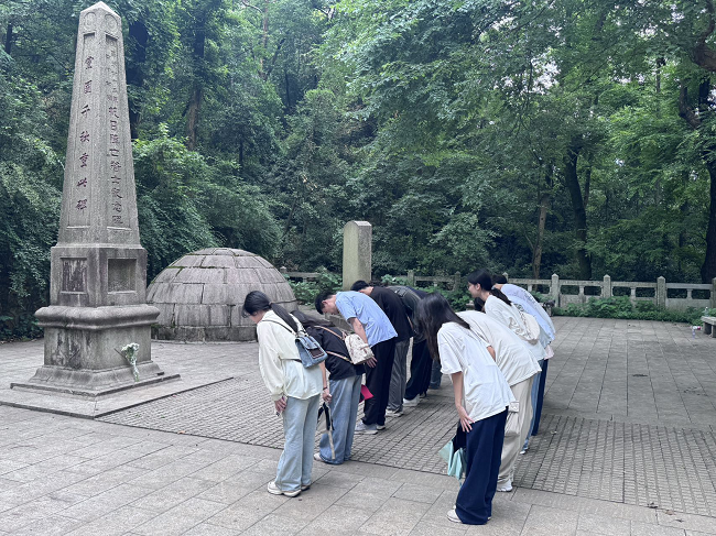 同学们从东方红广场出发,一路沿登高路登顶,在岳麓山至高点感受“太极悠然可会”的境界,畅谈学习中华优秀传统文化的体会和感悟。随后同学们来到国民革命军第七十三军抗日阵亡将士纪念碑前鞠躬致敬,缅怀先烈。在此,辅导员、团支部指导老师曹浩带领同学们学习了湖南抗战历史,指出中国大地发生了翻天覆地的变化,今天的幸福生活来之不易,新时代大学生要铭记历史,坚定听党话、感党恩、跟党走的信念。