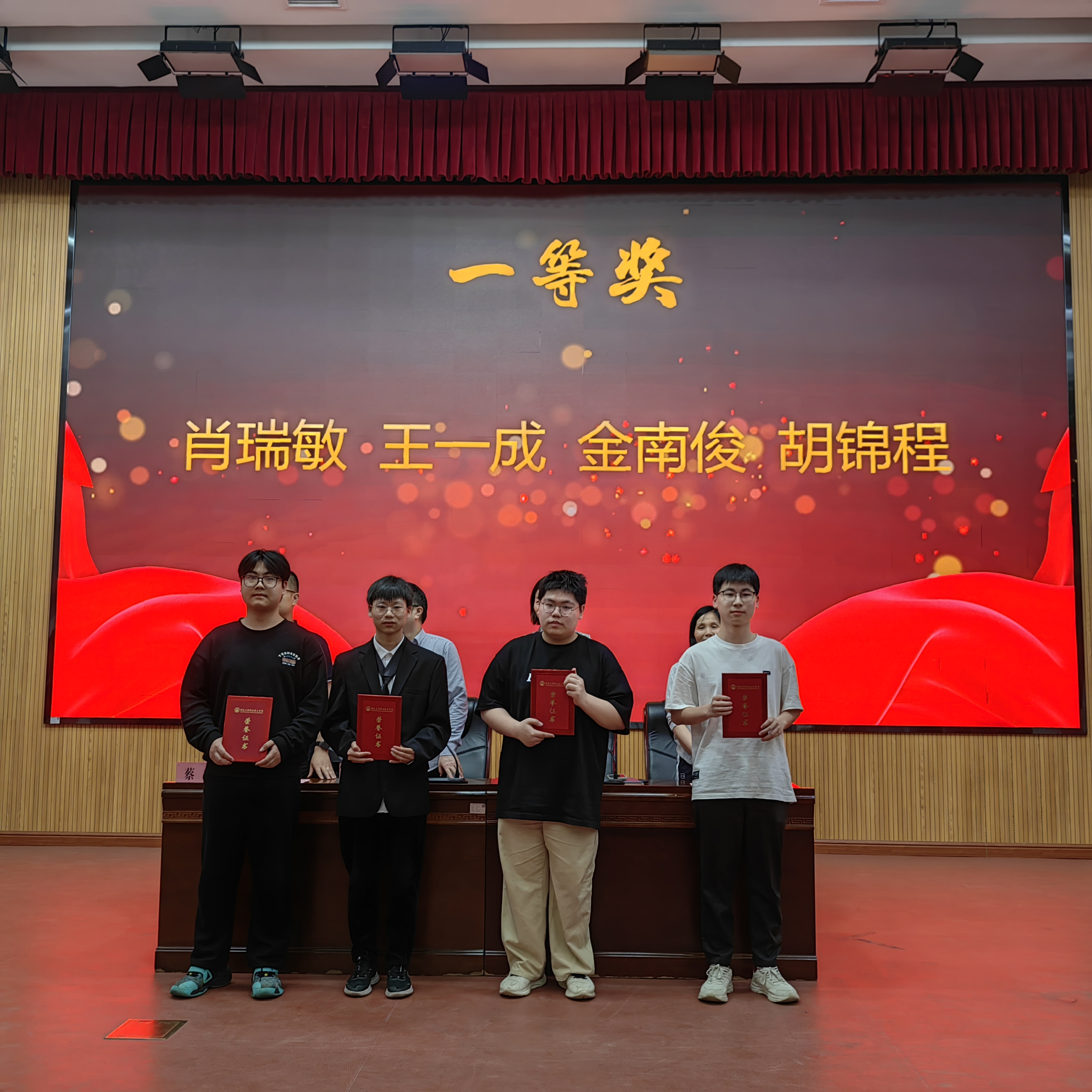 大会在庄严的国歌声中拉开帷幕。全体师生肃立齐唱,激昂的旋律点燃了现场氛围,更坚定了师生“技能报国、匠心筑梦”的信念。学院党总支书记蒋丽琴宣读2025年技能大赛获奖名单,共获得一等奖5项、二等奖2项、三等奖3项,现场为获奖学生及优秀指导老师颁发荣誉证书。获奖学生代表朱永汉上台发言,他回顾备赛历程时提到:“通过反复讨论任务的分工、不断的掐表测试、优化项目任务内容,我深刻体会到精益求精的价值所在。这份荣誉属于团队,更离不开老师的悉心指导。”