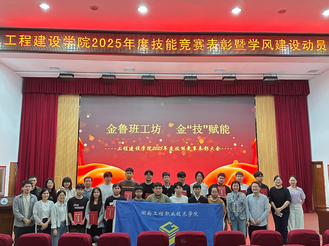 2025年4月22日,湖南工程职院工程建设学院在图书馆报告厅隆重召开2025年度技能竞赛表彰暨学风建设动员大会。学院领导班子、获奖学生及师生代表齐聚一堂,共同见证技能竞赛硕果,凝聚学风建设共识。会议以“表彰先进树标杆,学风赋能促发展”为主线,全面总结技能竞赛成果,部署学风建设新方向。