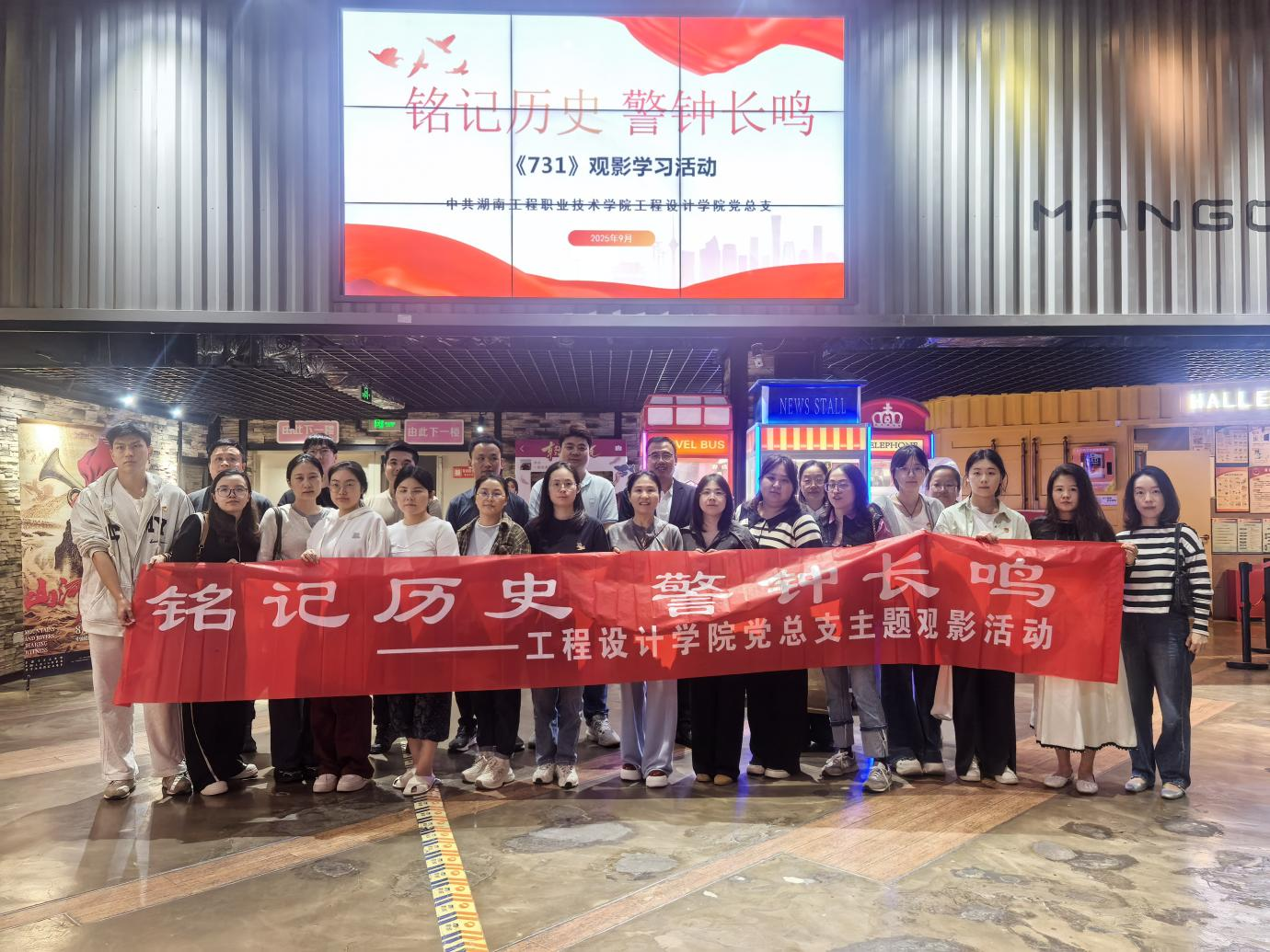 为深化爱国主义教育,弘扬伟大抗战精神,9月23日下午,学院党总支组织全体教职工党员及学生党员开展主题观影活动,集体观看历史题材影片《731》,通过重温民族苦难史,激发爱国报国情怀。