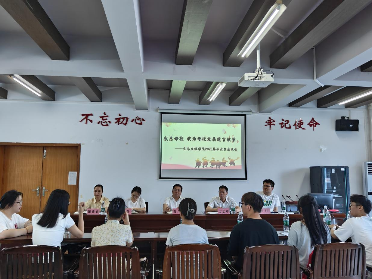 为深入了解毕业生需求,听取学生对学校发展的建设性意见,帮助毕业生扣好廉洁从业“第一粒扣子”。6月20日上午9点,我院在求贤楼601召开了2025届毕业生座谈会。生态文旅学院全体班子成员、专业主任代表、辅导员代表及毕业生代表参加会议,座谈会由党总支副书记易佳主持。