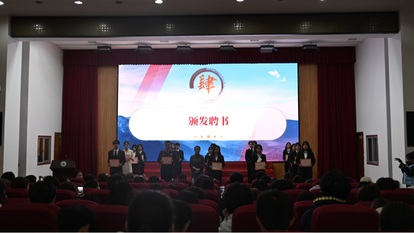 团总支书记谢雅君老师宣读了学院第六届团总支学生会委员及干事的任命文件。谢书记向全体新任干部表示祝贺,并希望他们牢记服务宗旨,紧扣学院生态文旅发展特色,勇于担当、善于作为,在实践中增长才干,在奉献中砥砺品格,努力成为师生信赖、堪当重任的学生骨干,为学院高质量发展贡献青春力量。